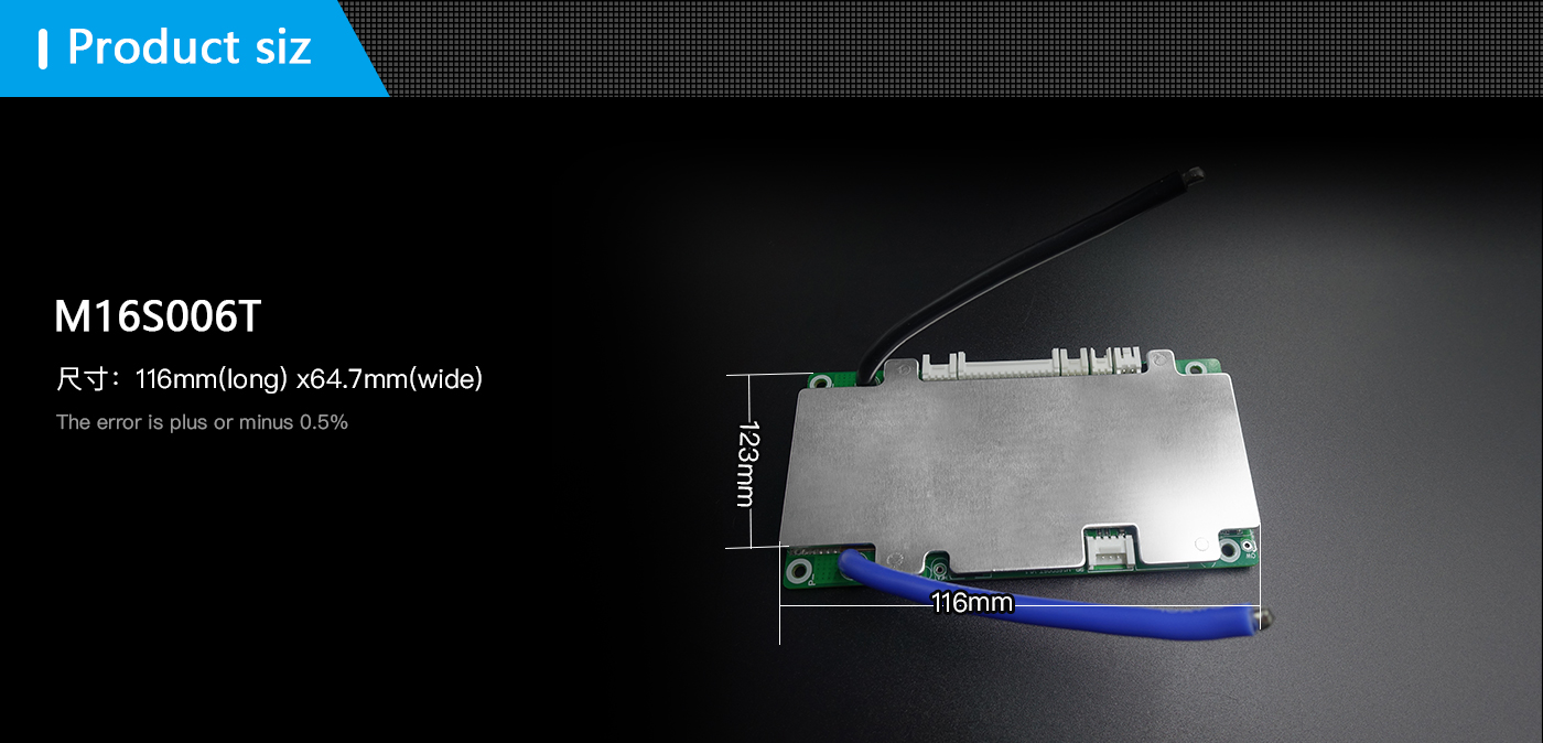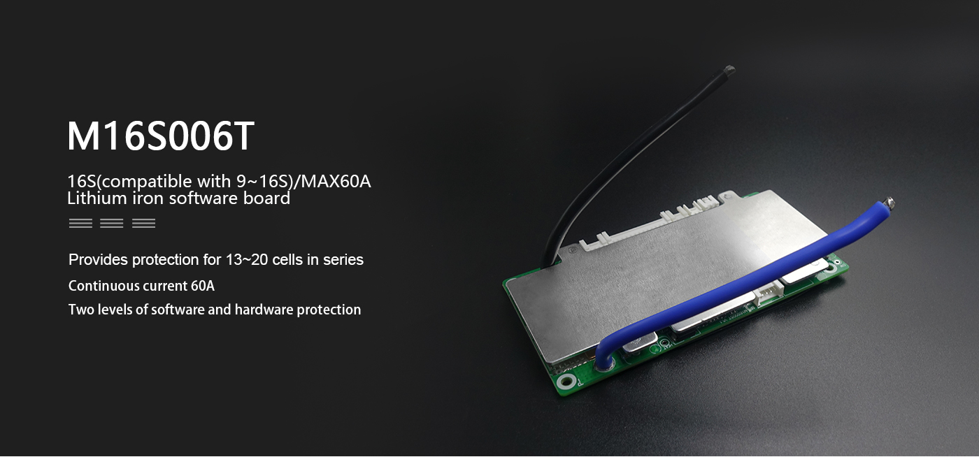 Hippo M16S006T is a protection board solution specially designed by our company for 9~16 battery packs of power batteries; it can be used for lithium batteries with different chemical properties, such as lithium ion, lithium polymer, lithium iron phosphate, etc. This protection board has a strong load capacity and the maximum continuous current can reach 50A.
